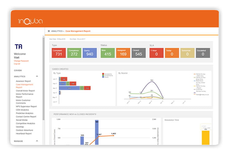 inQuba’s integrated platform allows the rules-based creation of cases based upon defined customer activity, or feedback through any channel. This may include a customer getting stuck on their journey, specific feedback received through any channel, or the measurement of poor sentiment. All cases are organized within role-based, productivity-enhancing dashboards.